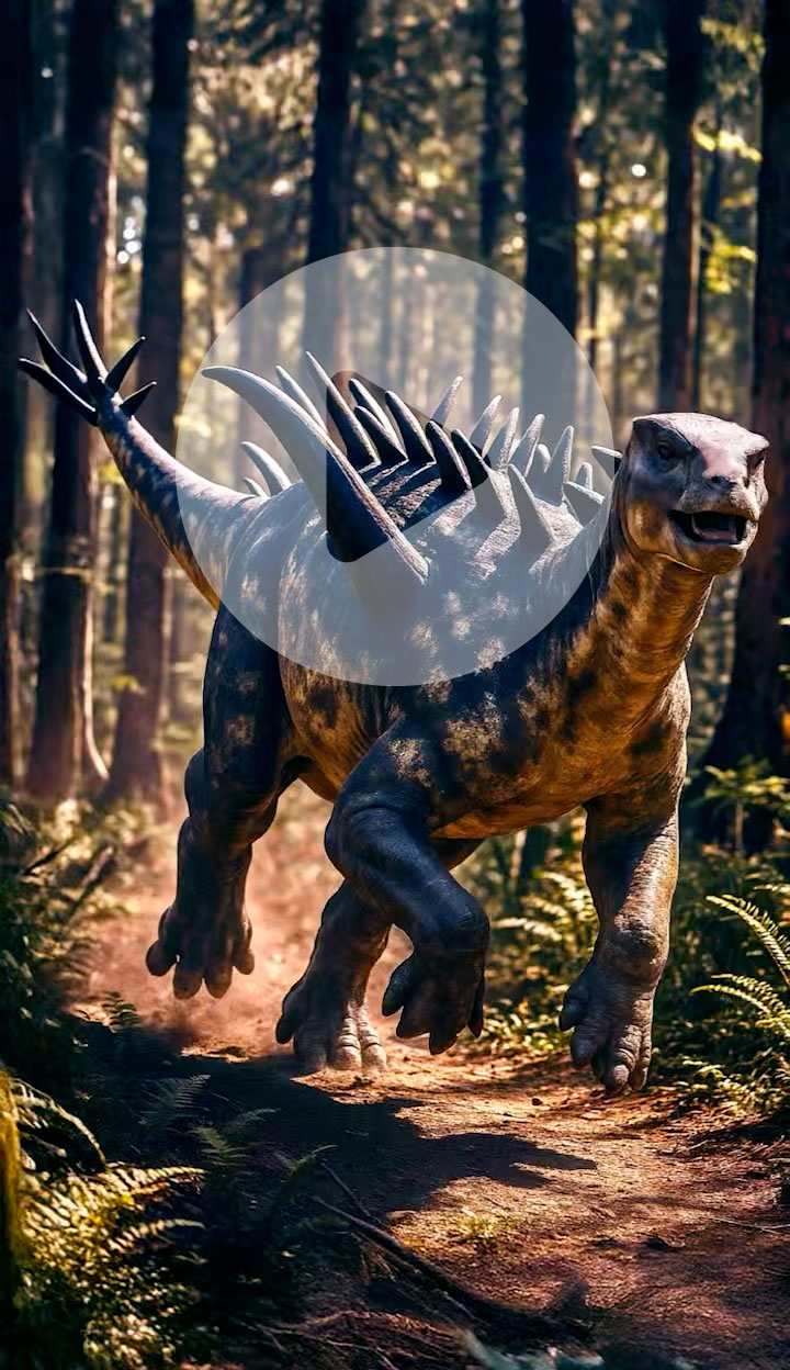 Gigantspinosaurus had plates and huge shoulder spines. It ate plants and lived in the Jurassic.