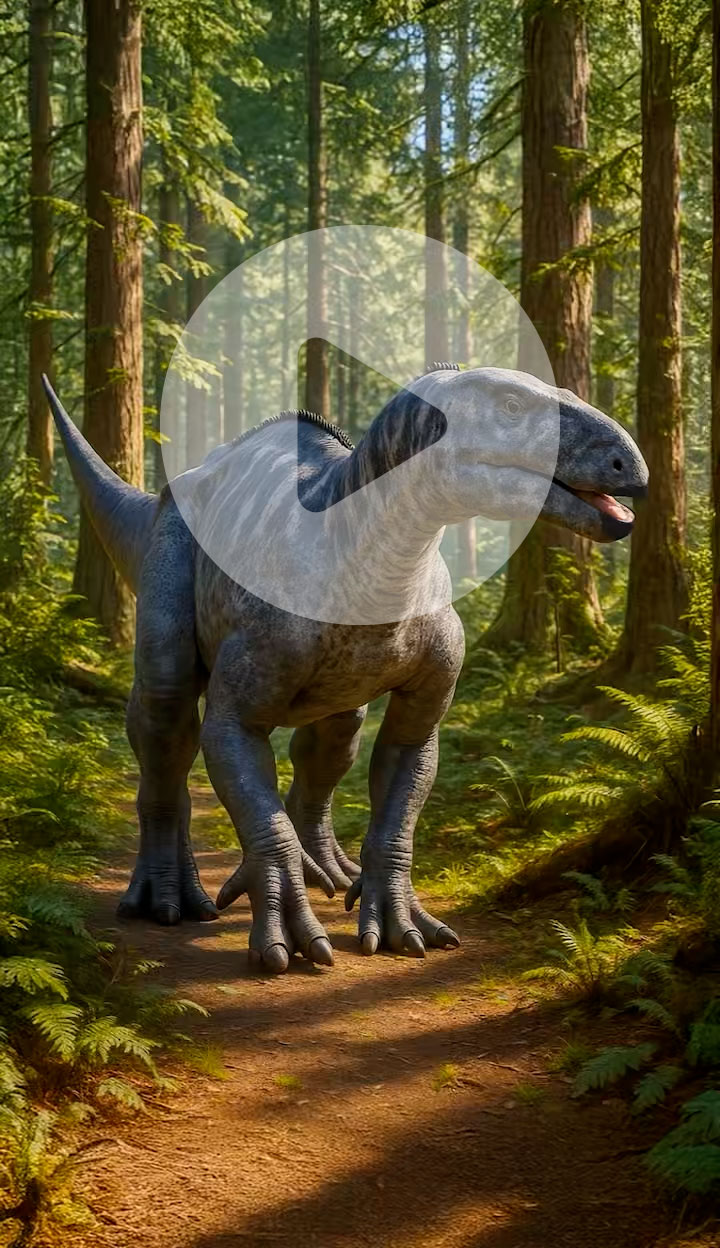 Iguanodon was a large herbivore with a thumb spike. It walked on two or four legs and lived in groups.