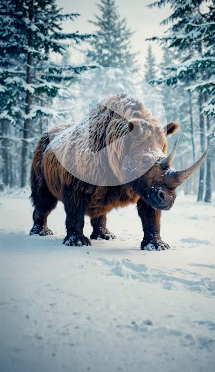 The Woolly Rhinoceros had thick fur and two large horns. It lived during the last Ice Age.
