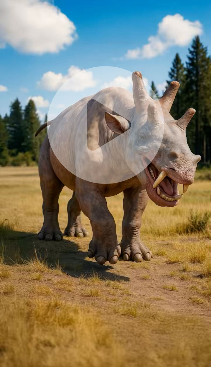 Uintatherium was a large animal with six horns on its head. It lived in humid forests and ate leaves and fruits.